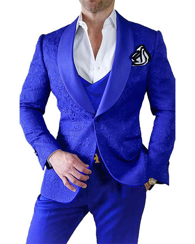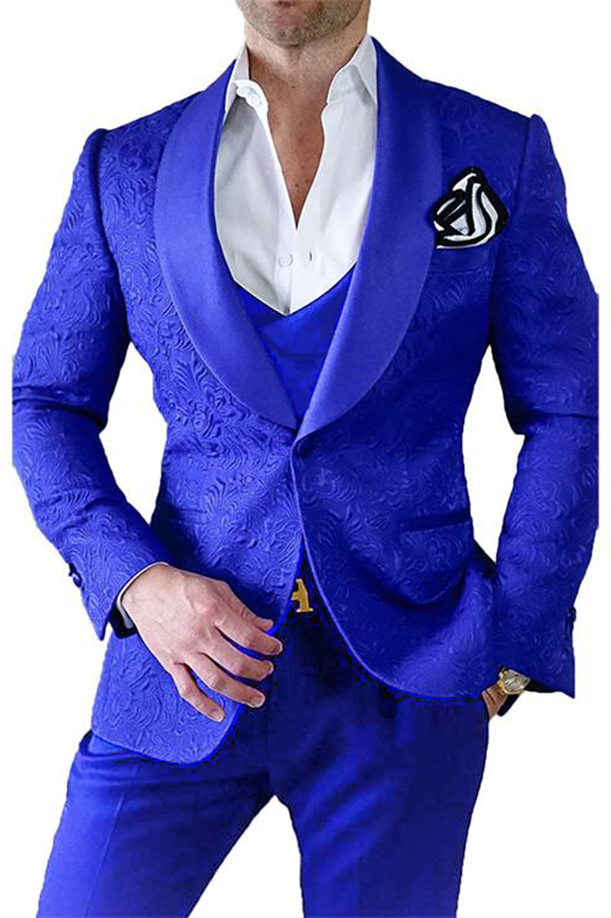 Traje de novio azul real con diseño floral, esmoquin de boda, elegante, ajustado, personalizado, para hombre, trajes de fiesta, 3 piezas CB11123