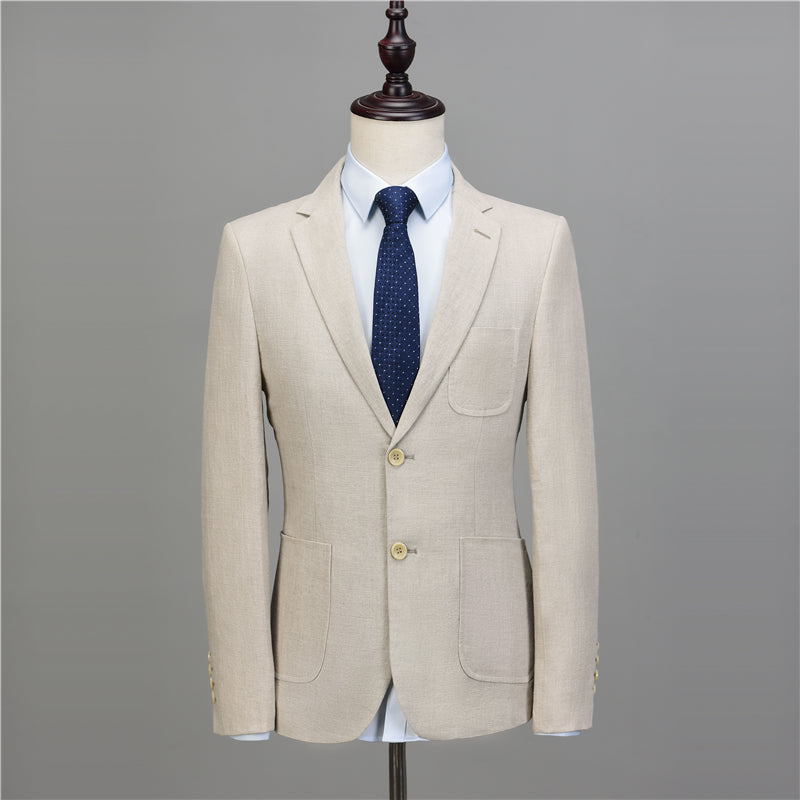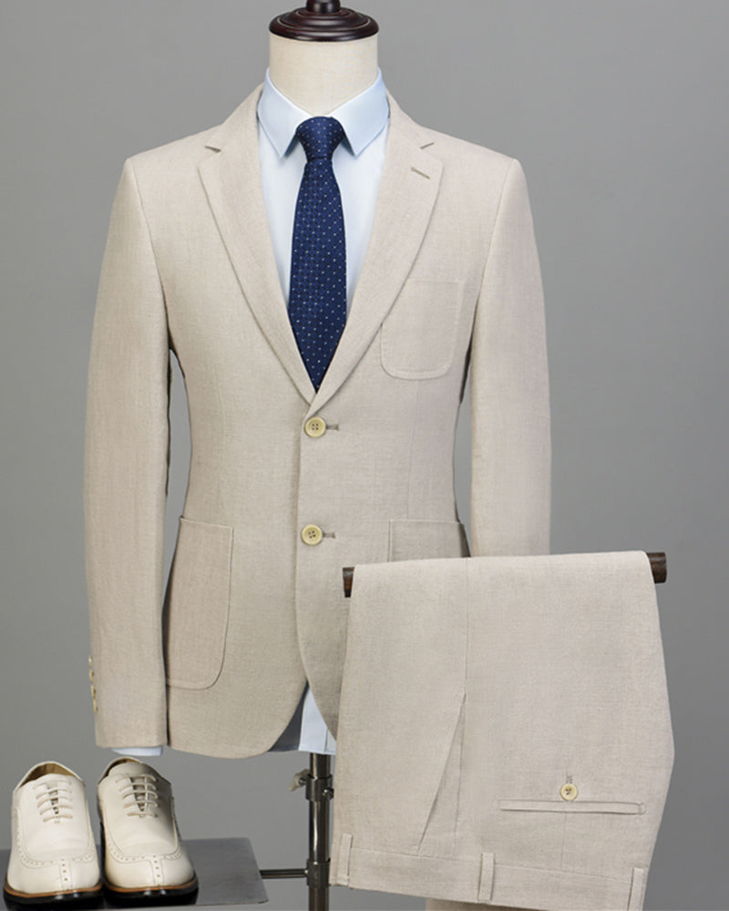Trajes de boda de lino de verano de corte entallado en beige Classyby para novio 2022, dos piezas (abrigo + pantalón) CB20196