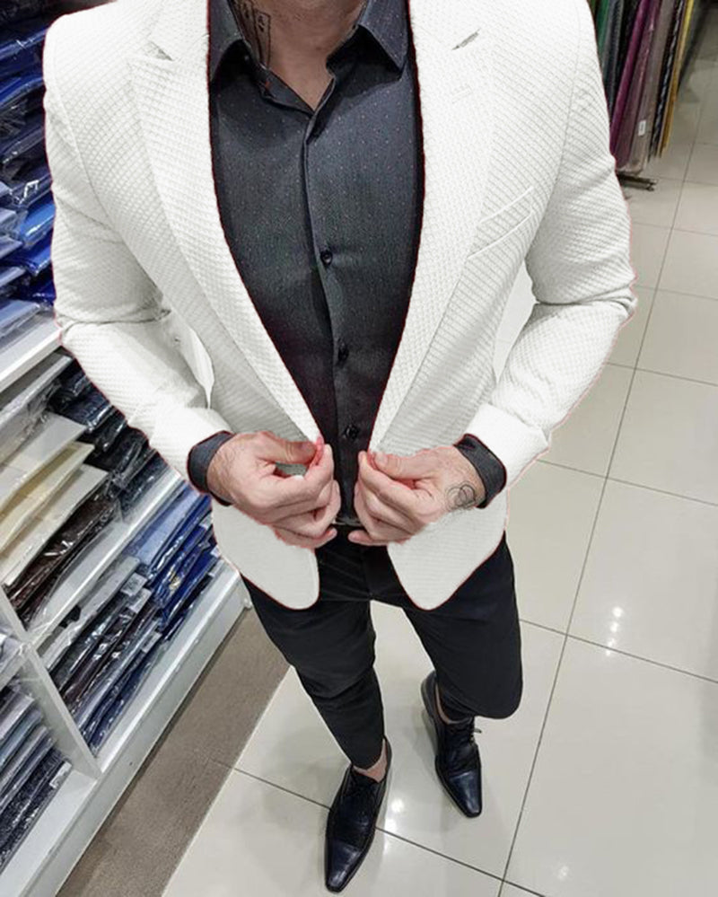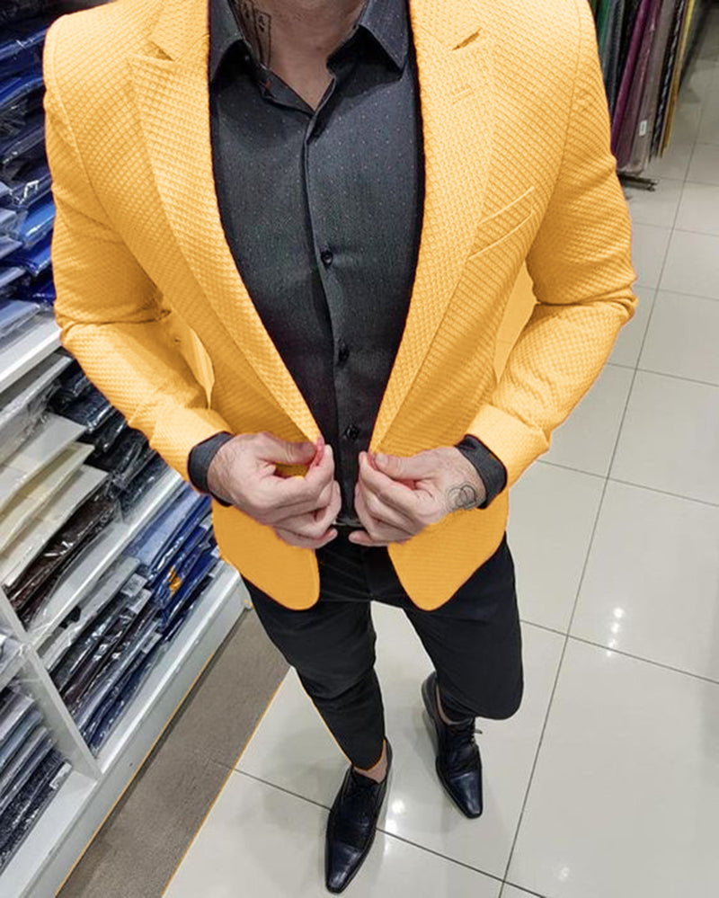 Chaqueta de traje con estampado de cuadros en color marfil, azul marino y amarillo de Classyby