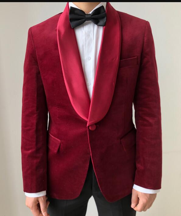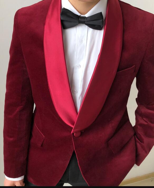 Trajes de fiesta para hombre de color burdeos con solapa chal Classyby 2020, esmoquin de 2 piezas CB6215