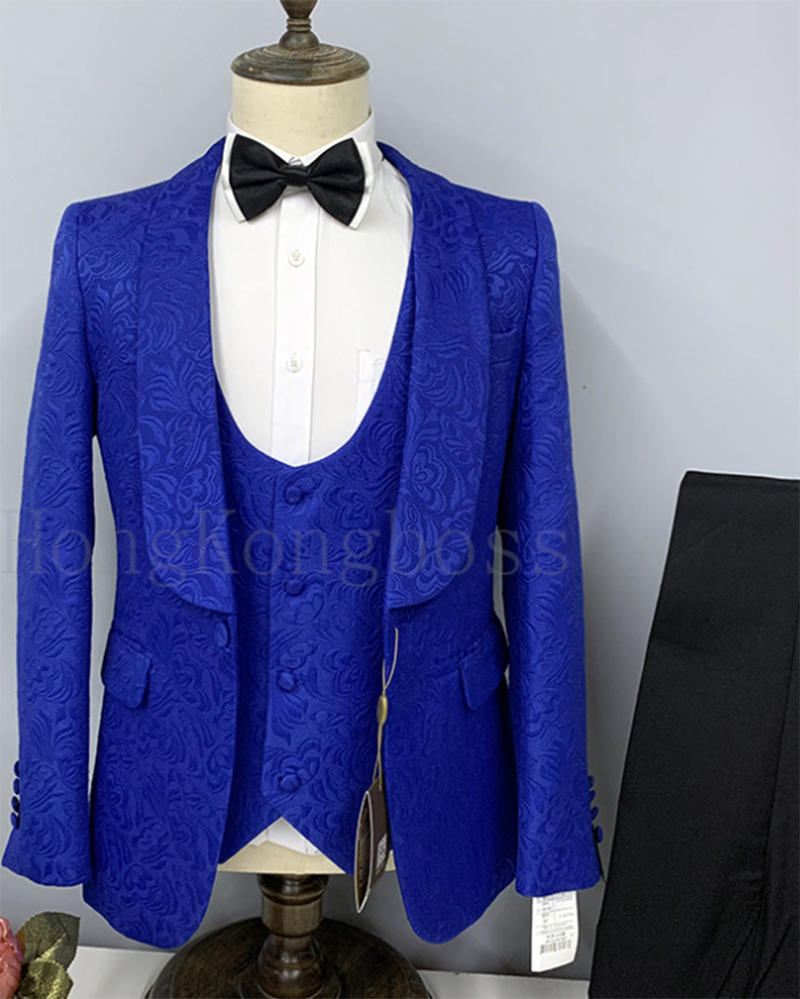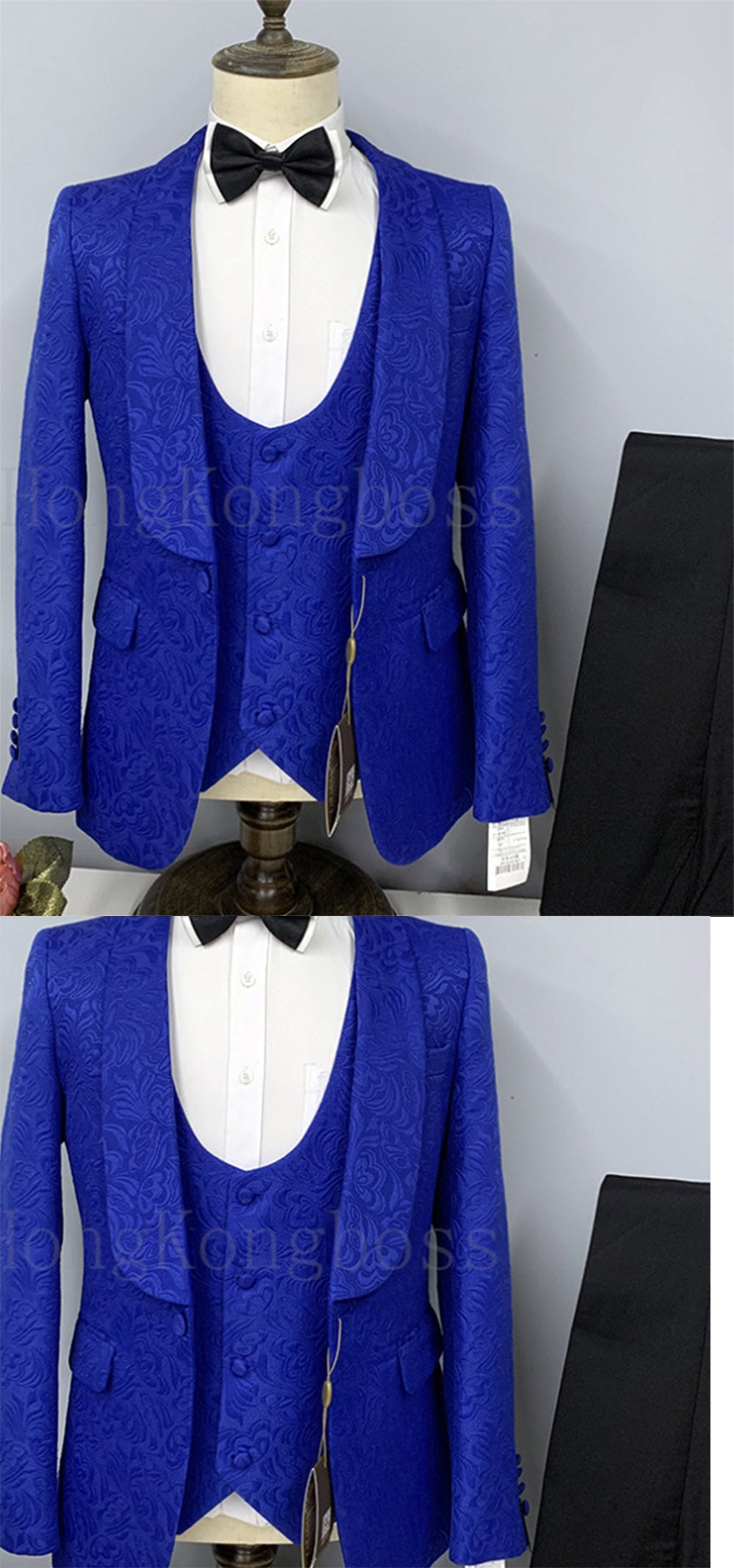 Traje de novio esmoquin de boda azul real con estampado floral 2022, traje de fiesta de graduación de 3 piezas CB11130