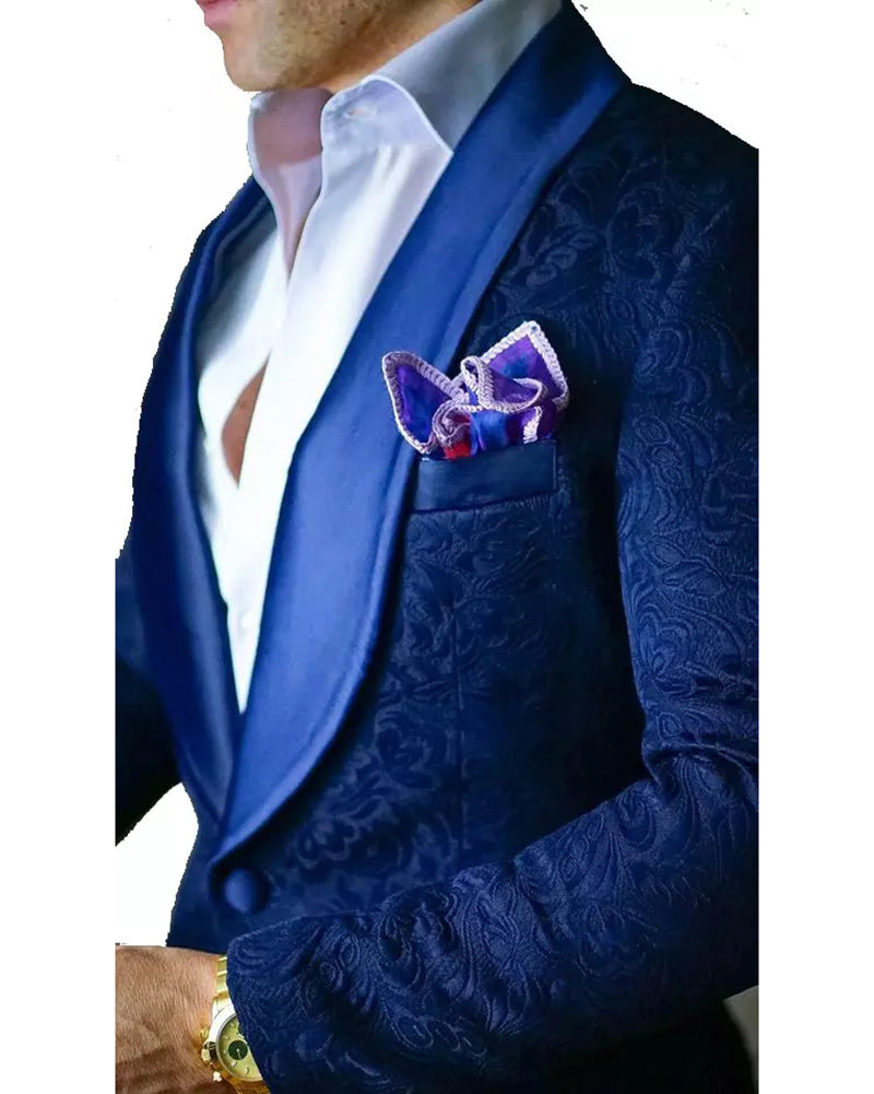Traje de fiesta de un botón con solapa chal azul real para hombre, 2 piezas, traje de padrino para boda (chaqueta + pantalón negro) WX122