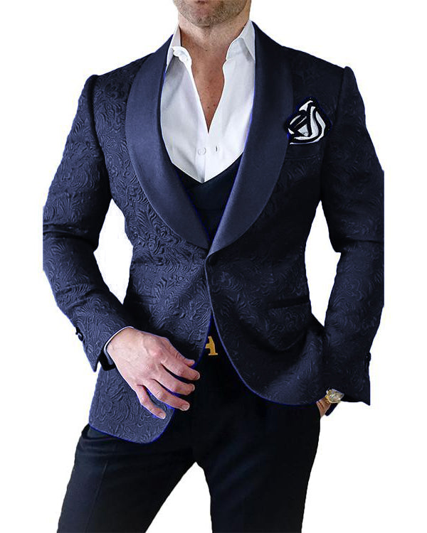 Trajes de esmoquin azul marino con solapa chal para hombre, trajes de boda para novio, 3 piezas (chaqueta + pantalón + chaleco) CB11122