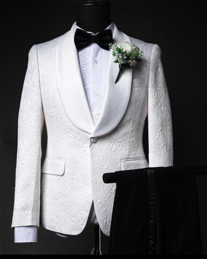 Esmoquin de novio con estampado de cachemira y flores blancas para hombre, trajes de boda para hombre de 2 piezas CB22771