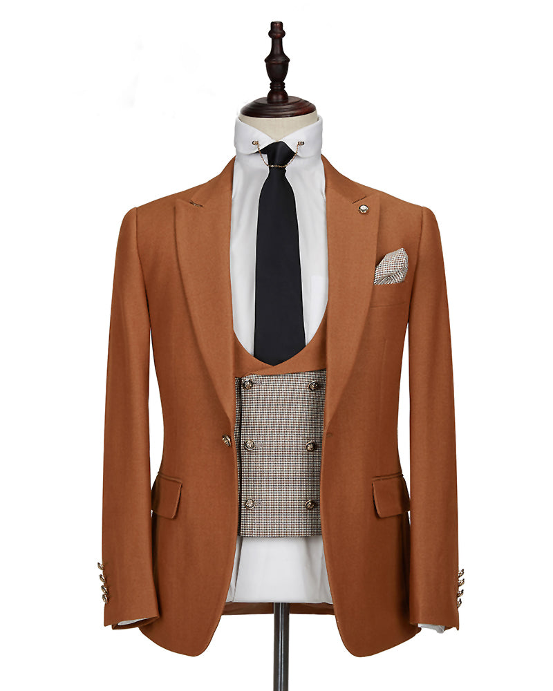 Trajes de cena de coral de corte entallado 2024 para hombre, trajes de fiesta formales de 3 piezas (chaqueta + chaleco + pantalones) CB0710