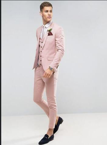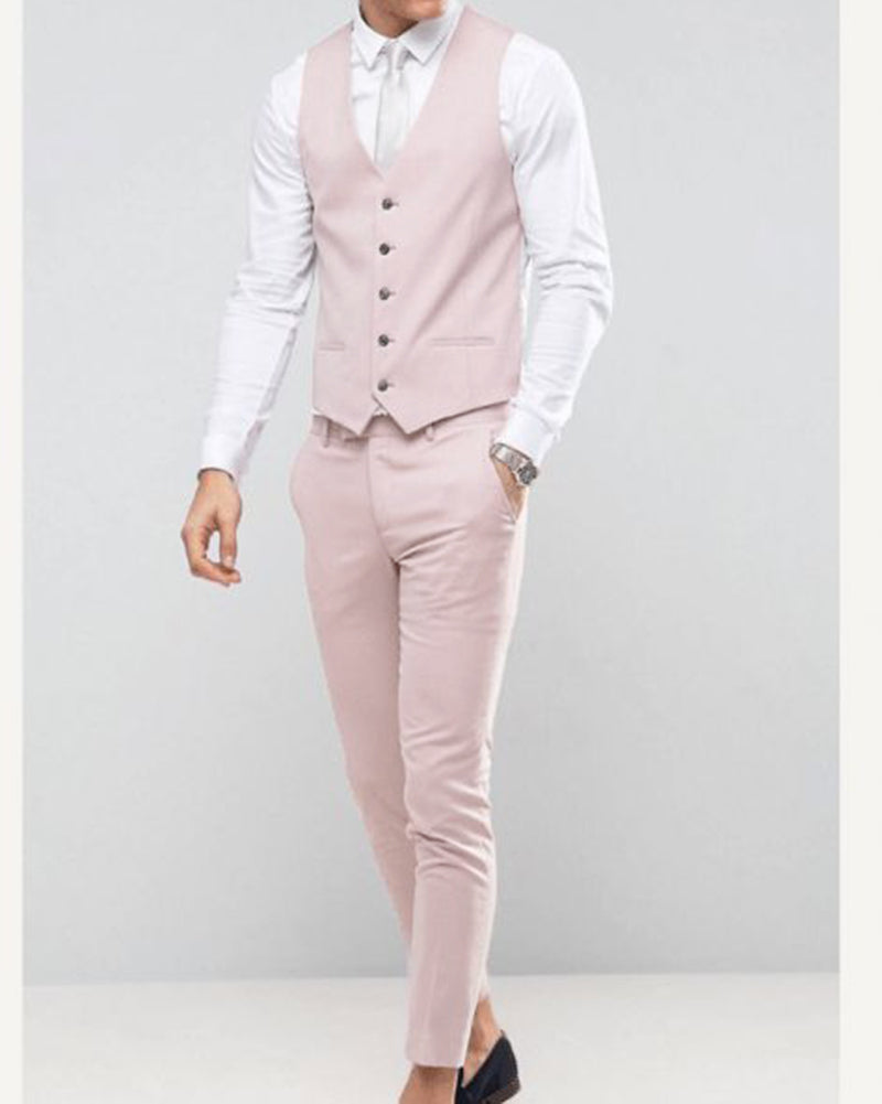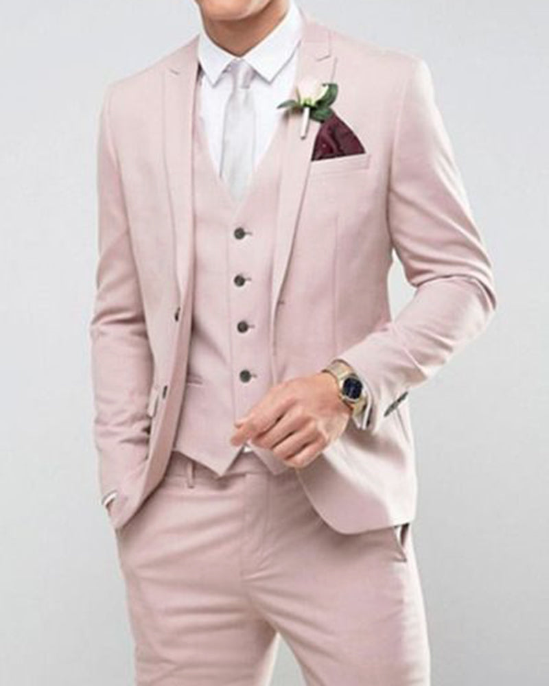 CB1115 Traje de 3 piezas para boda, fiesta, novio, esmoquin, corte entallado, color rosa pálido y sutil