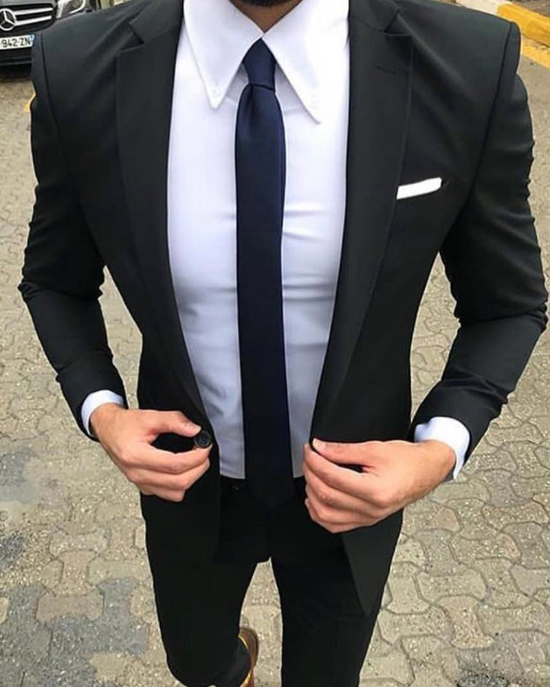 Traje de boda para padrinos de boda azul marino de dos piezas (chaqueta + pantalón)