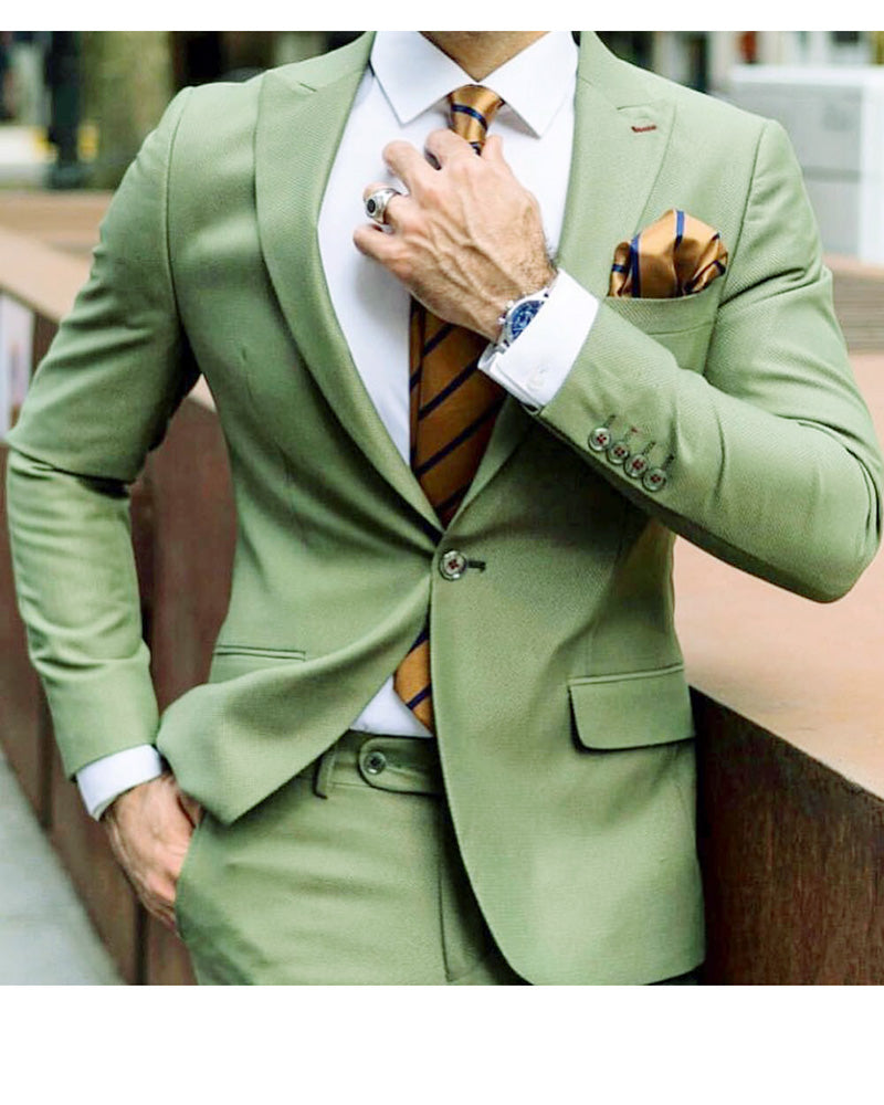 Traje de novio verde esmeralda con solapa de pico, esmoquin de graduación, 2 piezas (chaqueta + pantalones)