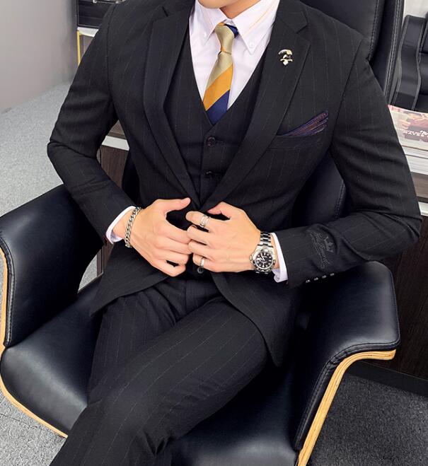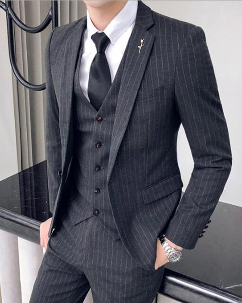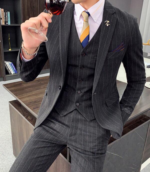 Trajes de rayas grises oscuros de 3 piezas de corte entallado, trajes de boda grises para hombre, traje de negocios o de cena CB06161