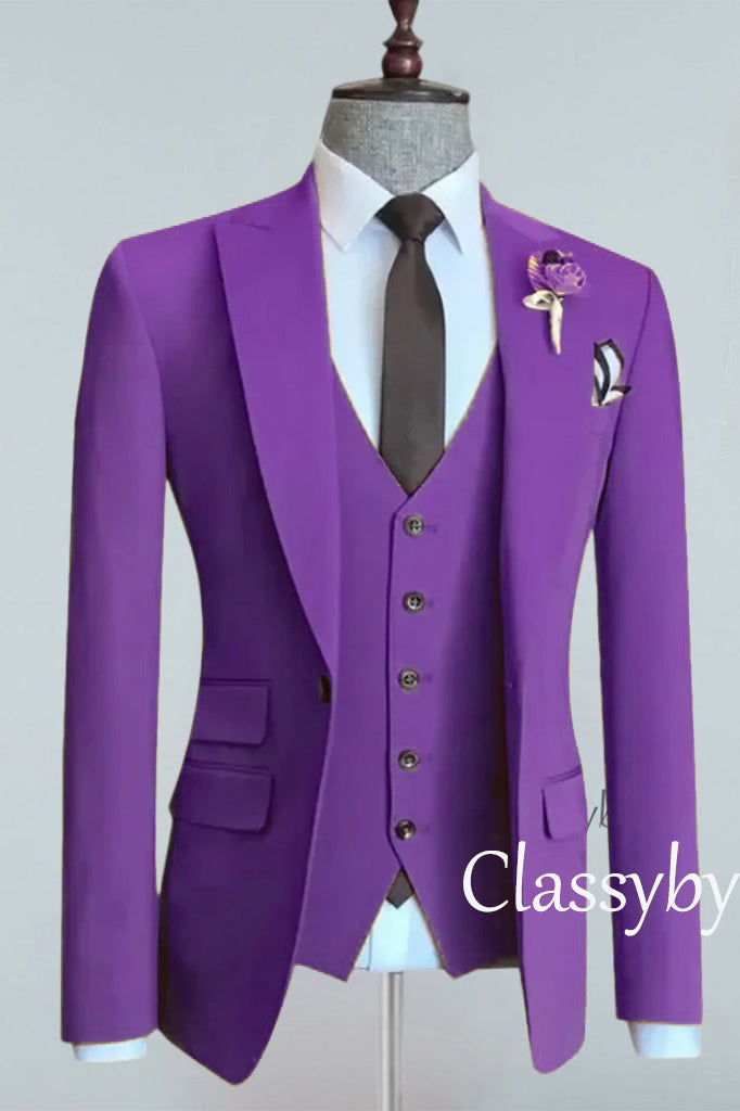 Three Pieces Slim Fit Purple Prom Suits for Guys Jacket+Pants +vest CS1129