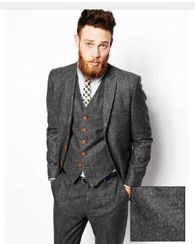 Conjunto de traje de tweed para hombre, de color marrón/gris, con abrigo y pantalón, corte entallado, traje de boda personalizado, blazer y esmoquin, 3 piezas (chaqueta, pantalón y chaleco)