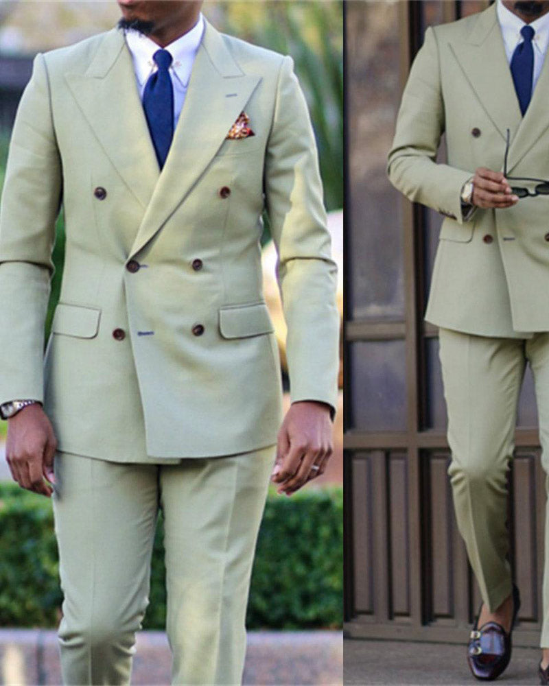 Traje de novio de doble botonadura en verde claro pálido, traje de fiesta para hombre, 2 piezas, chaqueta + pantalón CB2347