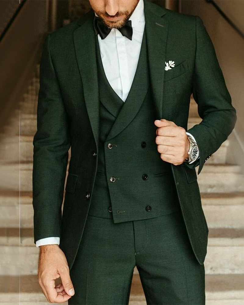 Trajes de fiesta de graduación verde oscuro hechos a medida para hombres, trajes formales de 3 piezas