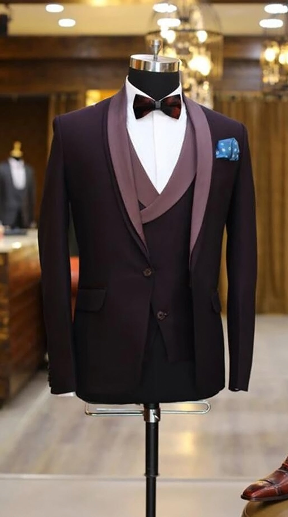Esmoquin morado ajustado para boda para hombre, traje de fiesta de tres piezas (chaqueta + chaleco + pantalones)
