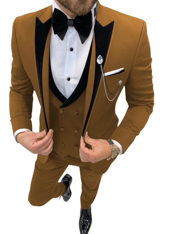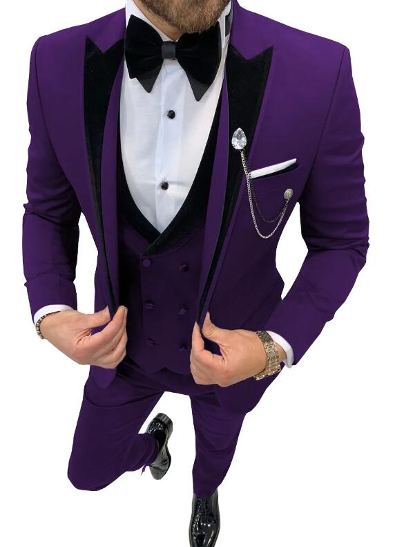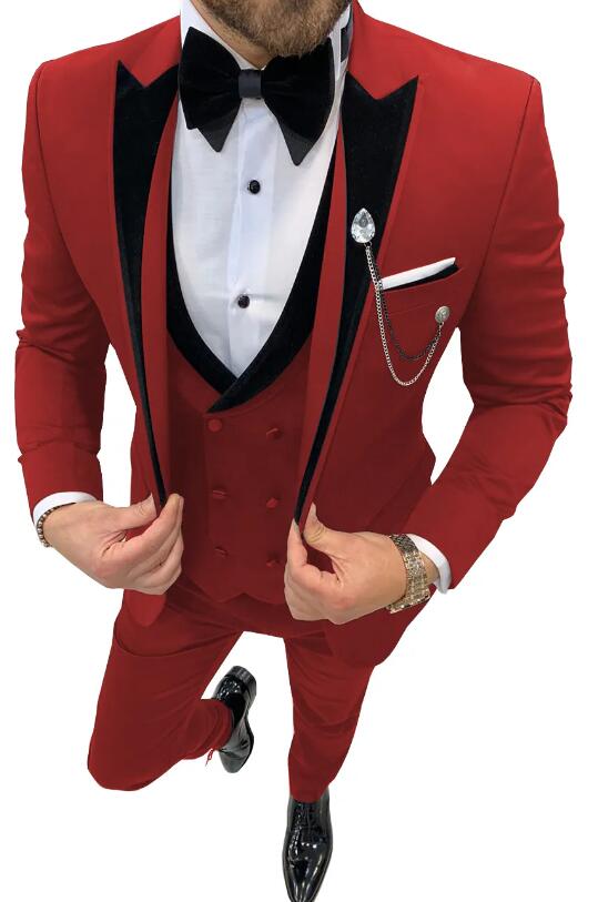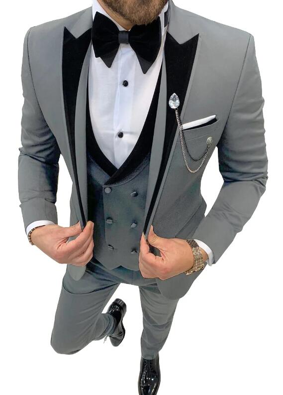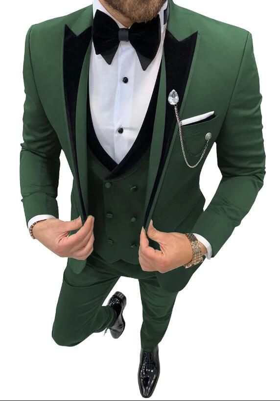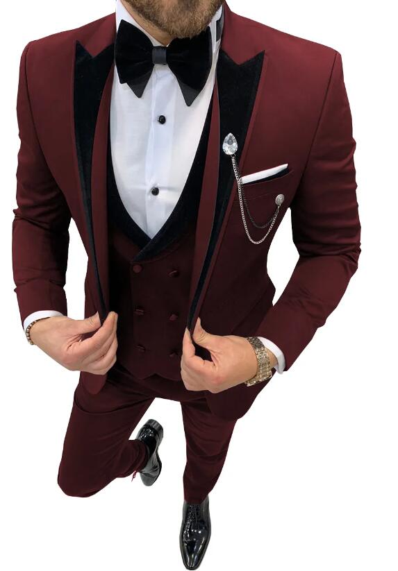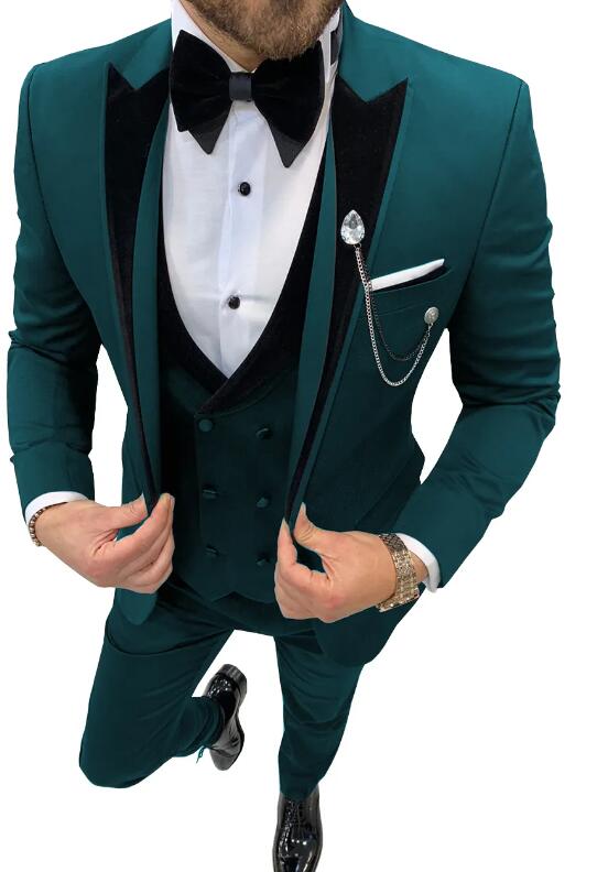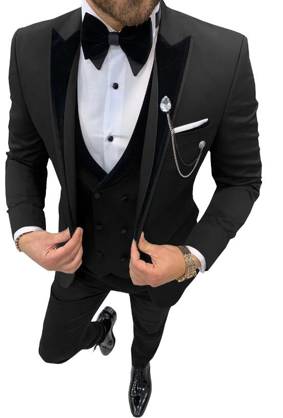 3 piezas de esmoquin de solapa de pico para boda o graduación para hombre, chaqueta de solapa de terciopelo + chaleco + pantalones CB4219
