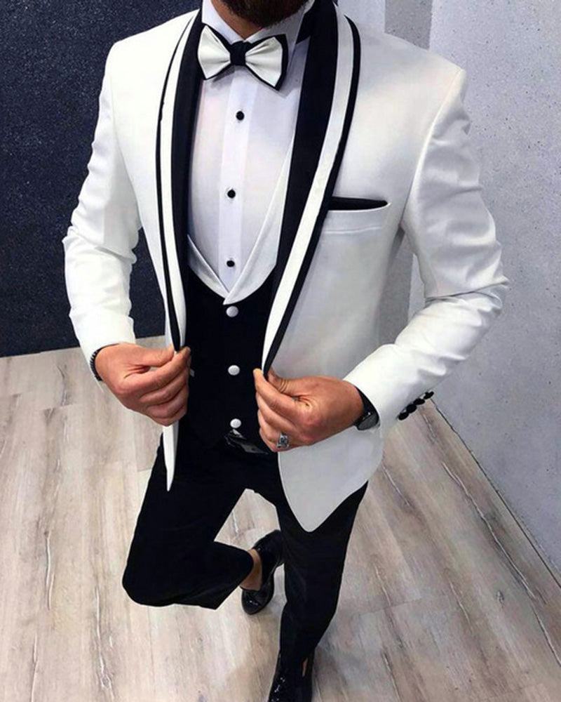 Traje de novio en blanco y negro para boda, blazer para hombre, 3 piezas (chaqueta + chaleco + pantalones) CB10726