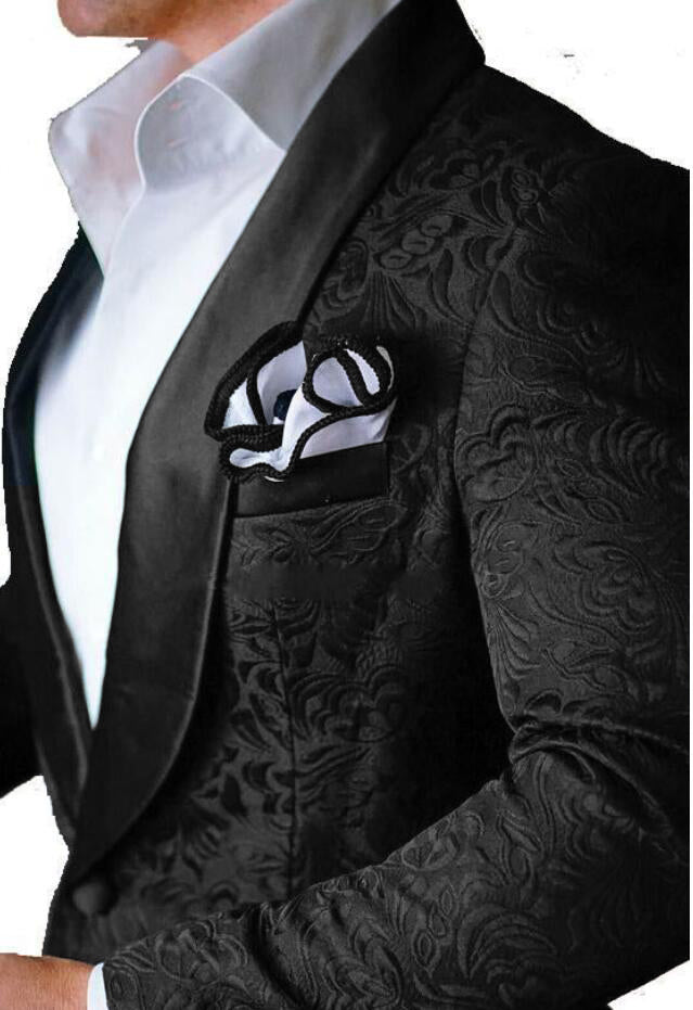 Esmoquin de graduación con estampado de cachemira negro para hombre, chaqueta y pantalones CB11293