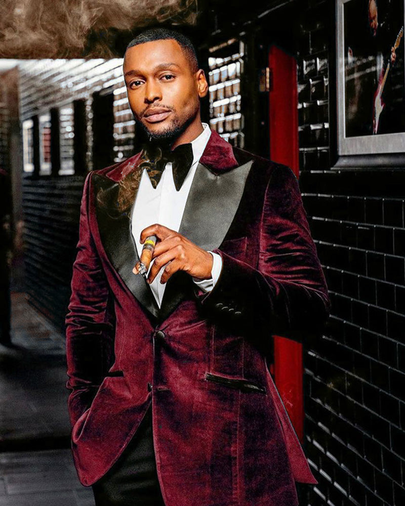 Blazer de terciopelo burdeos para hombre, traje de esmoquin para cena de invierno, chaqueta y pantalón, 2 piezas CB39231