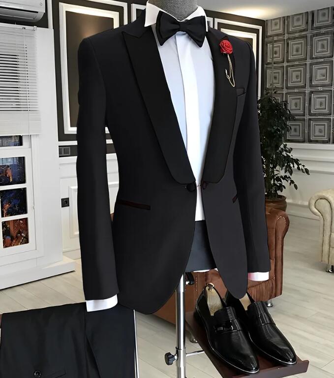 Conjunto clásico de 2 piezas de esmoquin para boda para hombre, chaqueta negra, pantalón y corbata, traje elegante para hombre personalizado, tallas XS a 5XL
