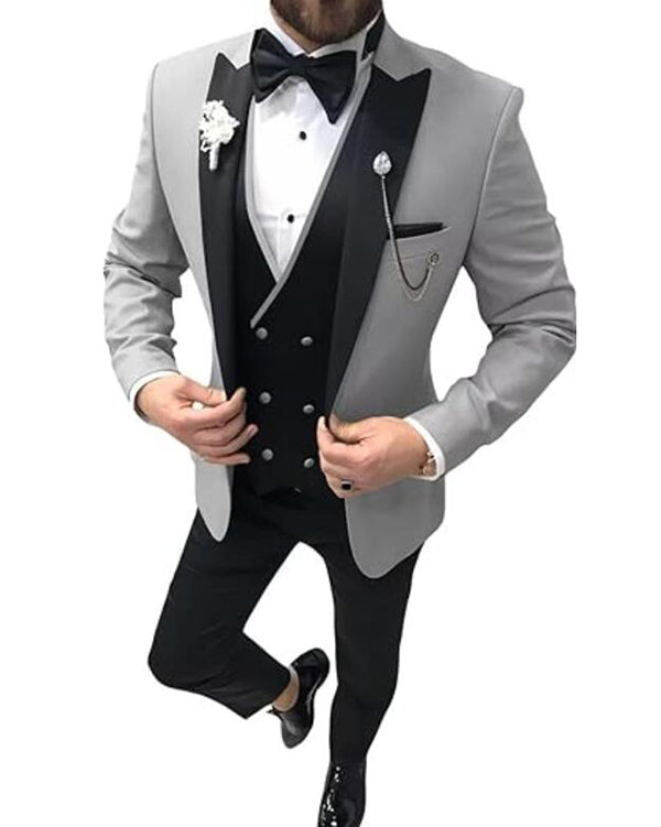 Traje de esmoquin de corte entallado gris claro para hombre, 3 piezas, chaqueta, chaleco y pantalones, 2024 CB24142