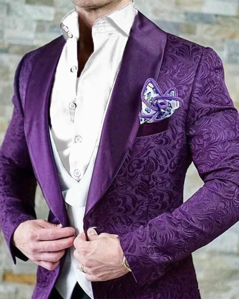 Traje de fiesta morado con estampado de cachemira, chaqueta de cóctel, blazer, 3 piezas + chaleco + pantalones CB3922
