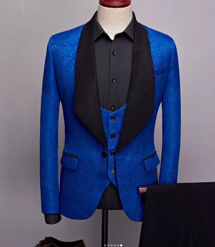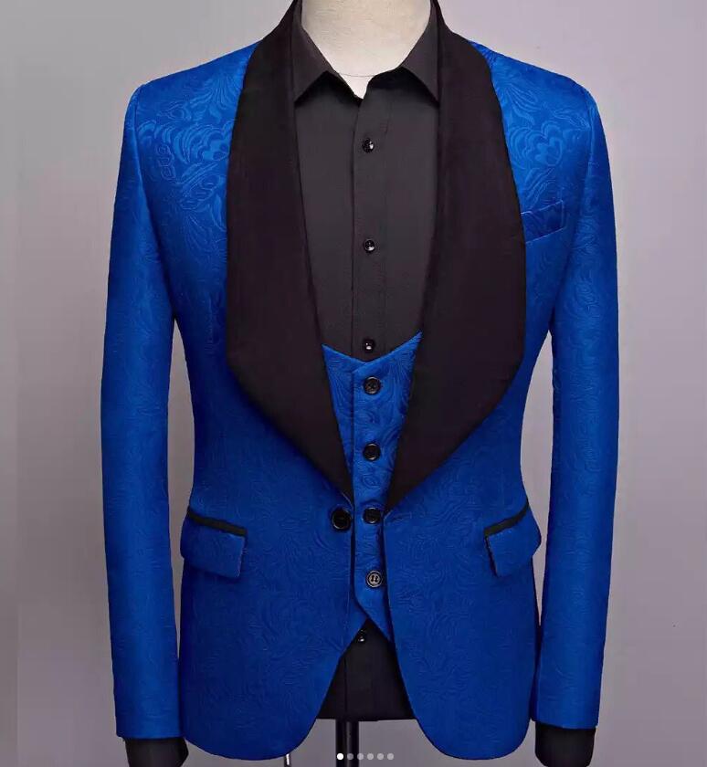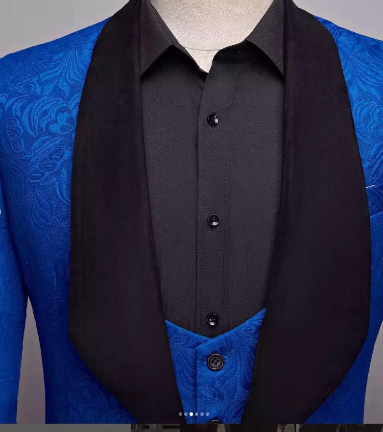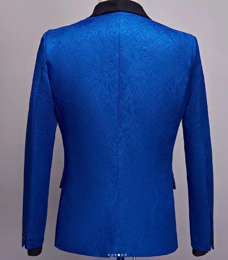 Trajes de fiesta de cóctel con esmoquin y estampado de cachemira en azul real CS4629
