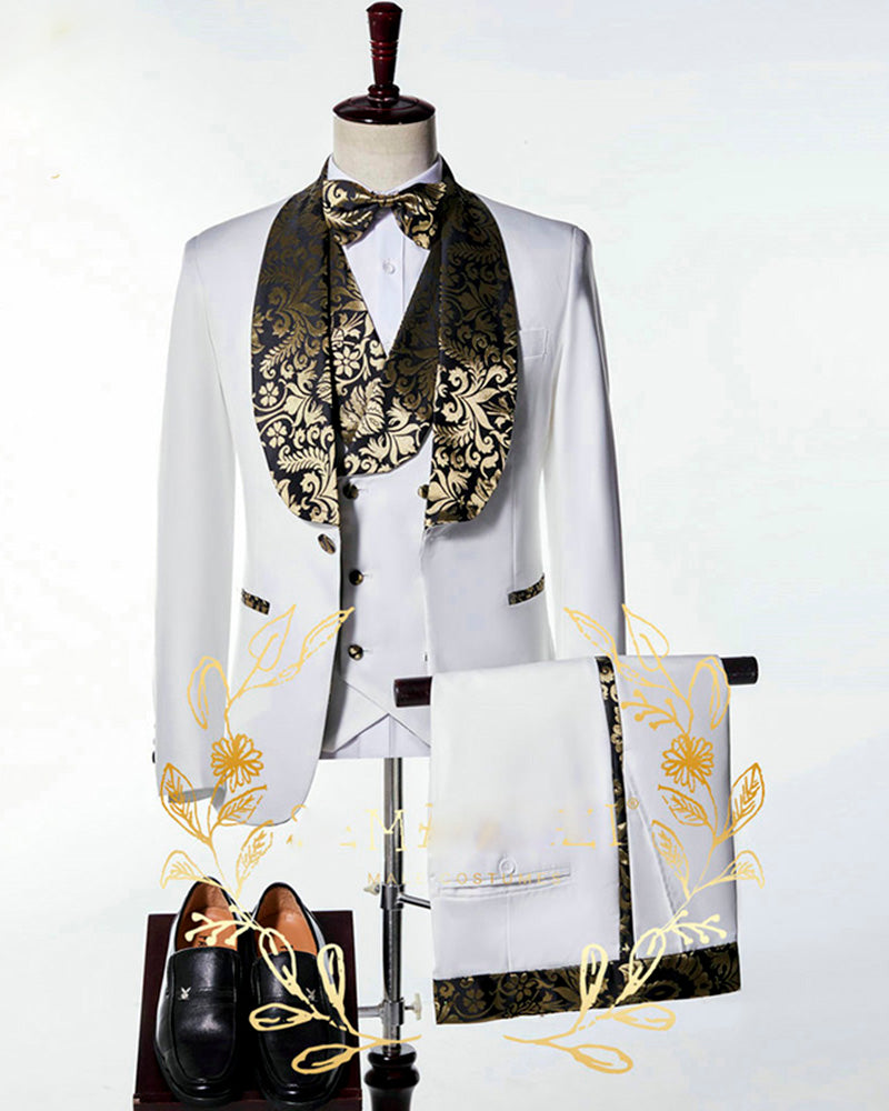 Esmoquin de boda blanco para novio con chal, 3 piezas CB2366