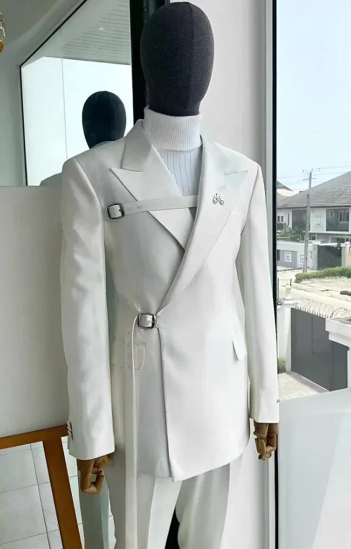 Esmoquin de boda cruzado de moda blanco/marfil para hombre, 2 piezas, solapa de pico CS47102