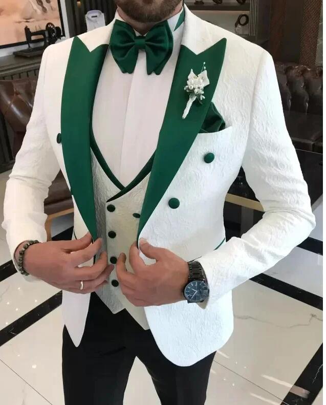 Esmoquin con diseño blanco y solapa de pico verde, 3 piezas CS4862