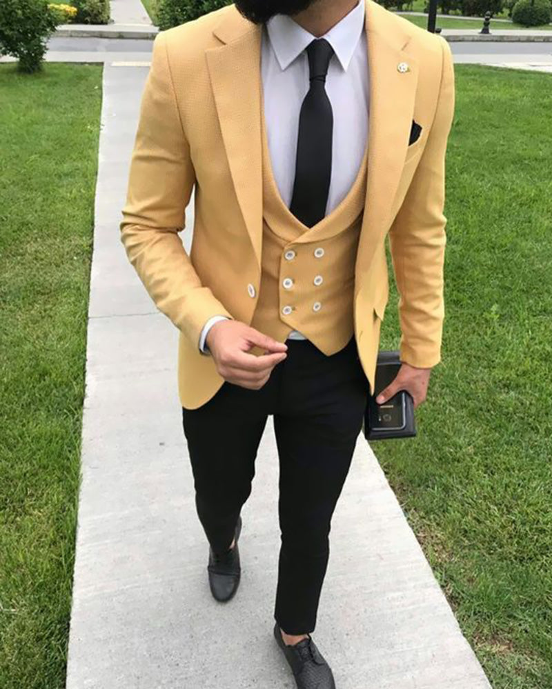 Blazer amarillo de tres piezas para hombre, esmoquin de graduación 2022 CB554