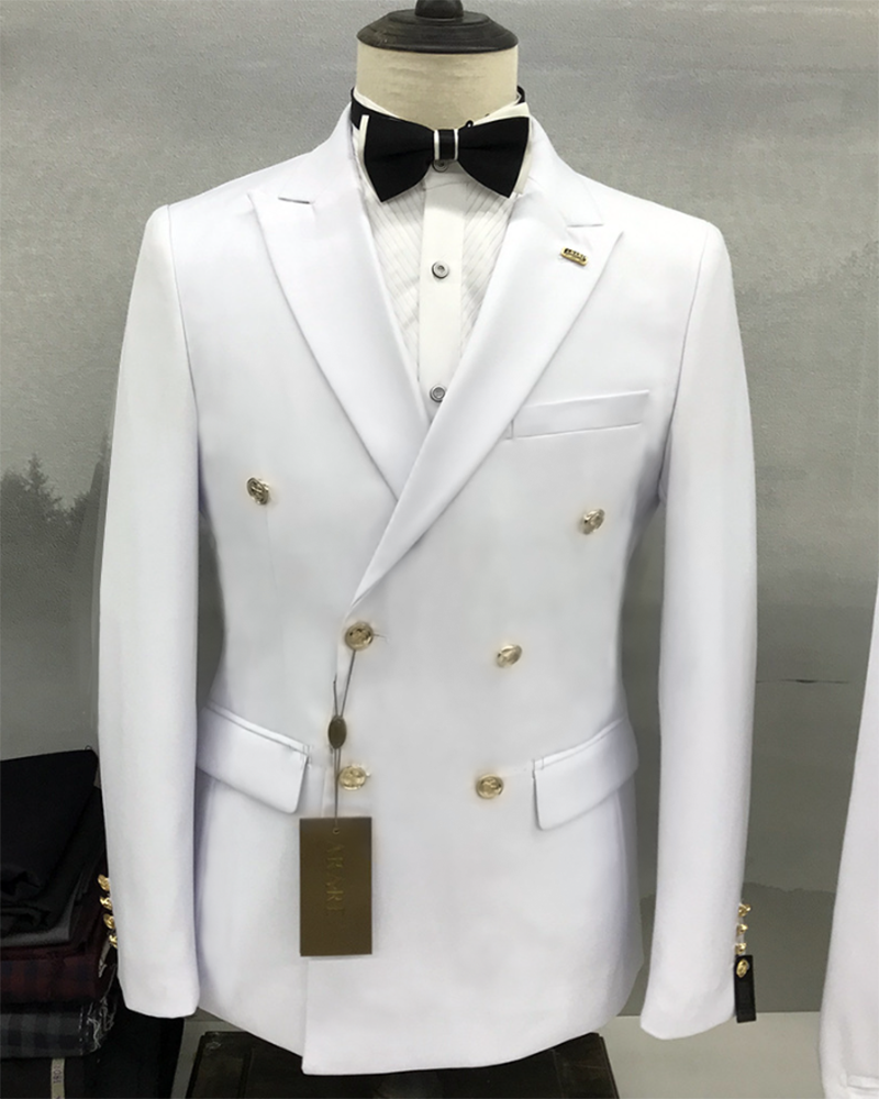 Traje de novio de tres piezas con solapa en pico y doble botonadura CB29234