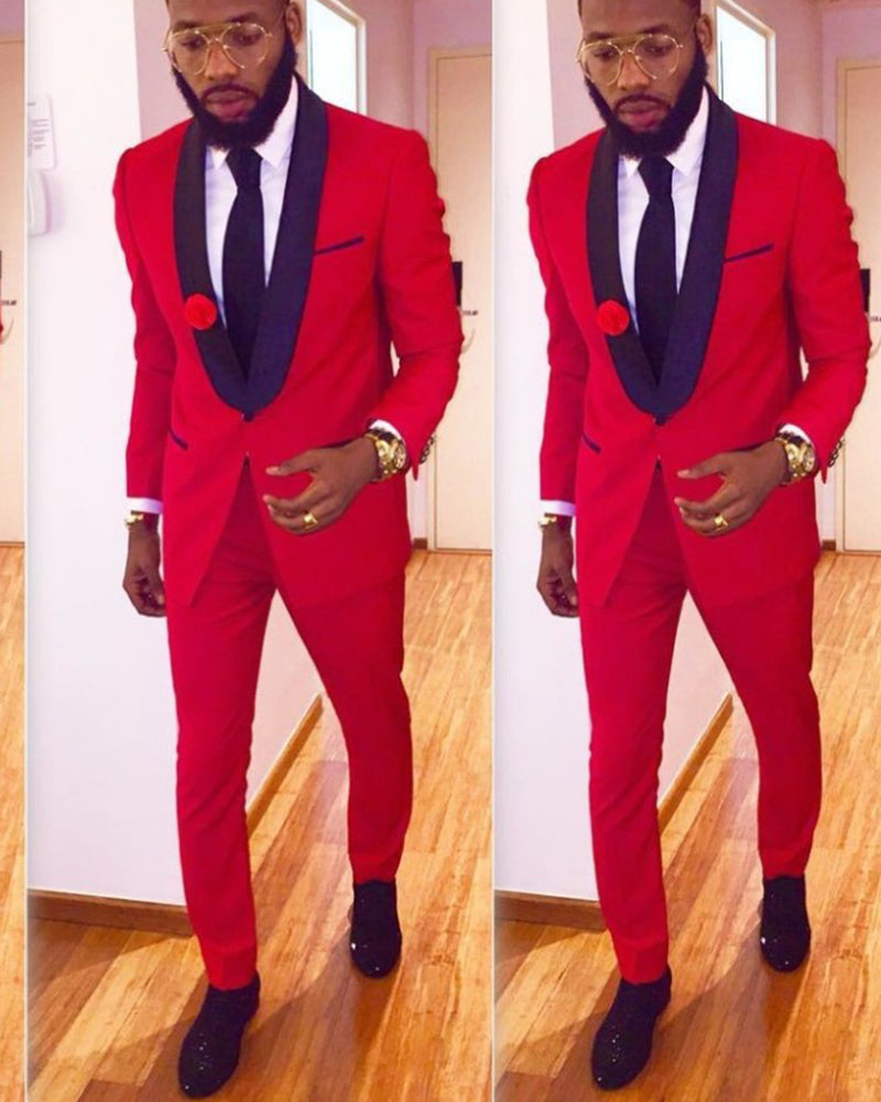 2 piezas de esmoquin rojo para hombre, abrigo de un botón (chaqueta + pantalón) CB0613