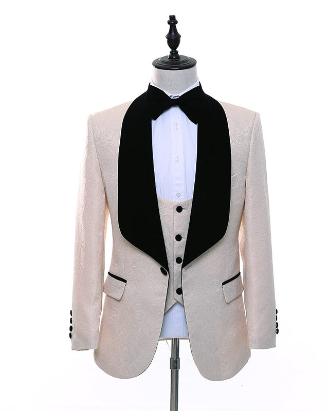 Traje de novio con solapa chal beige para hombre, esmoquin de graduación WX124