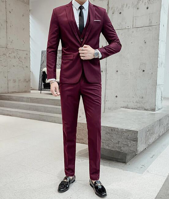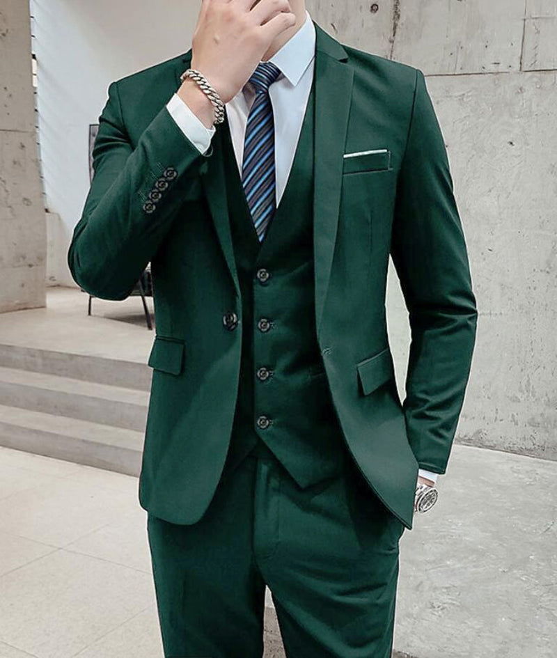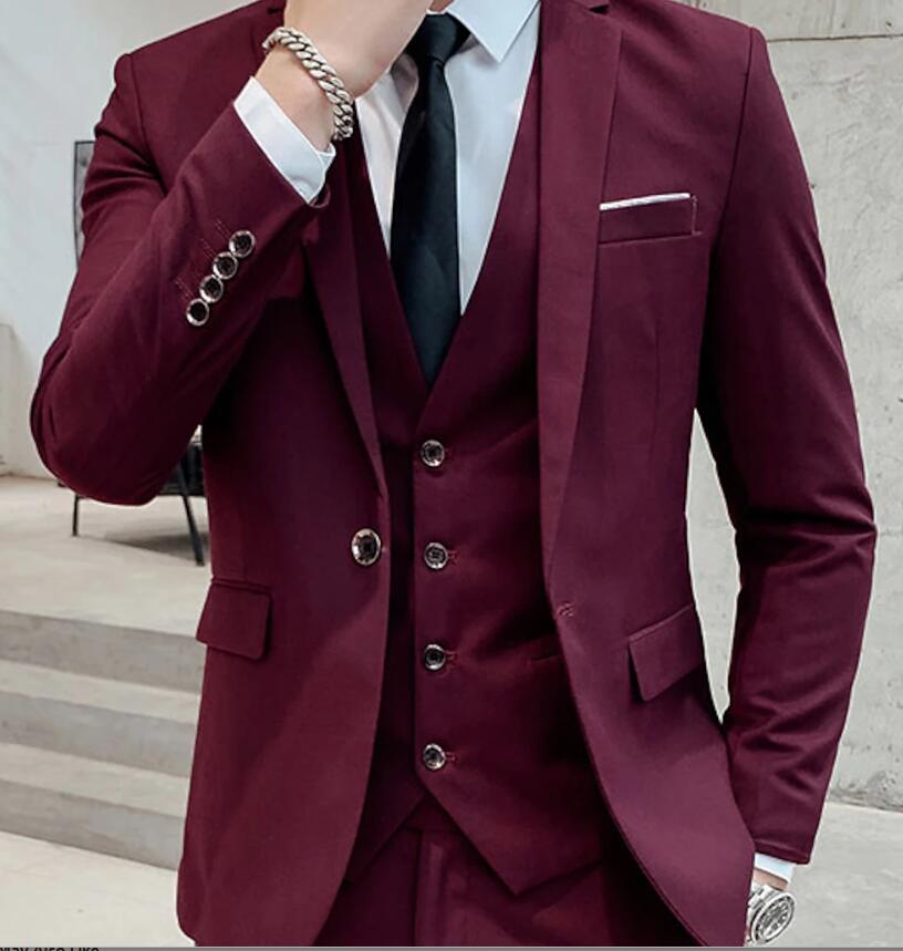 Trajes de fiesta para hombres, negros, verdes y burdeos, para adolescentes, 3 piezas CS12046