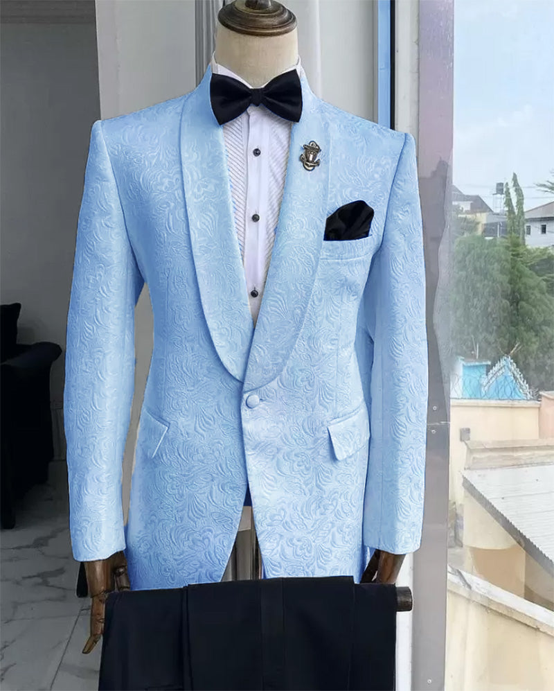 Jacquard Print Baby Blue Suit for Men Prom Wedding Blazer +vest 2 Pieces CS25344
