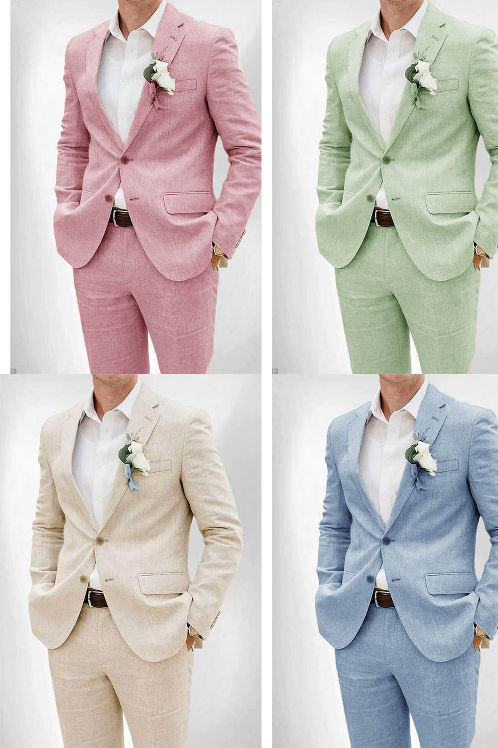 Trajes de verano para hombre, 2 piezas, color verde menta, rosa, azul y beige, CB23661