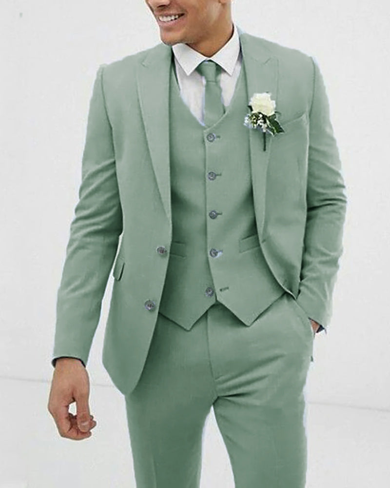 Trajes verde salvia para hombre, 3 piezas, corte entallado, blazer, trajes de fiesta, trajes de padrino CB1112