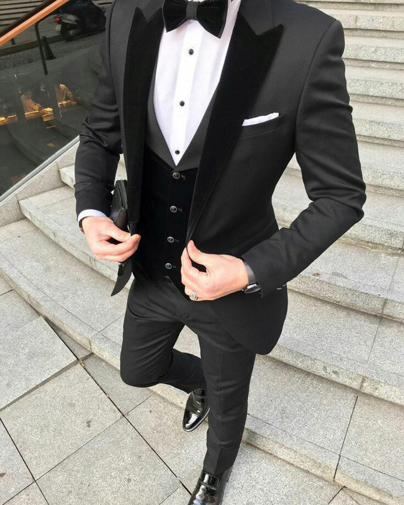 Traje de fiesta negro con solapa de terciopelo para hombre, esmoquin de 3 piezas CB5741