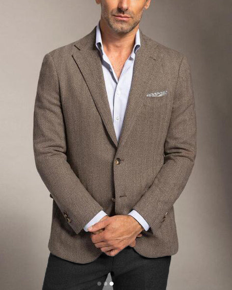 Trajes de negocios vintage para hombre, de otoño e invierno, de corte entallado, de tweed gris/marrón, con diseño de espiga, para novios CB1029