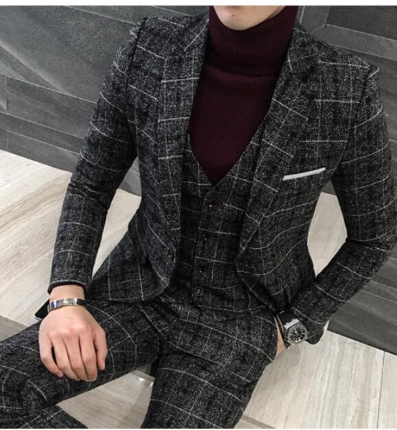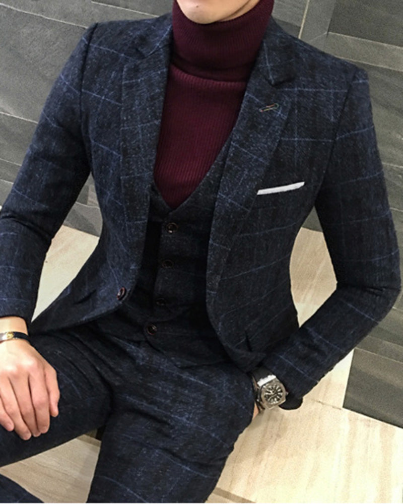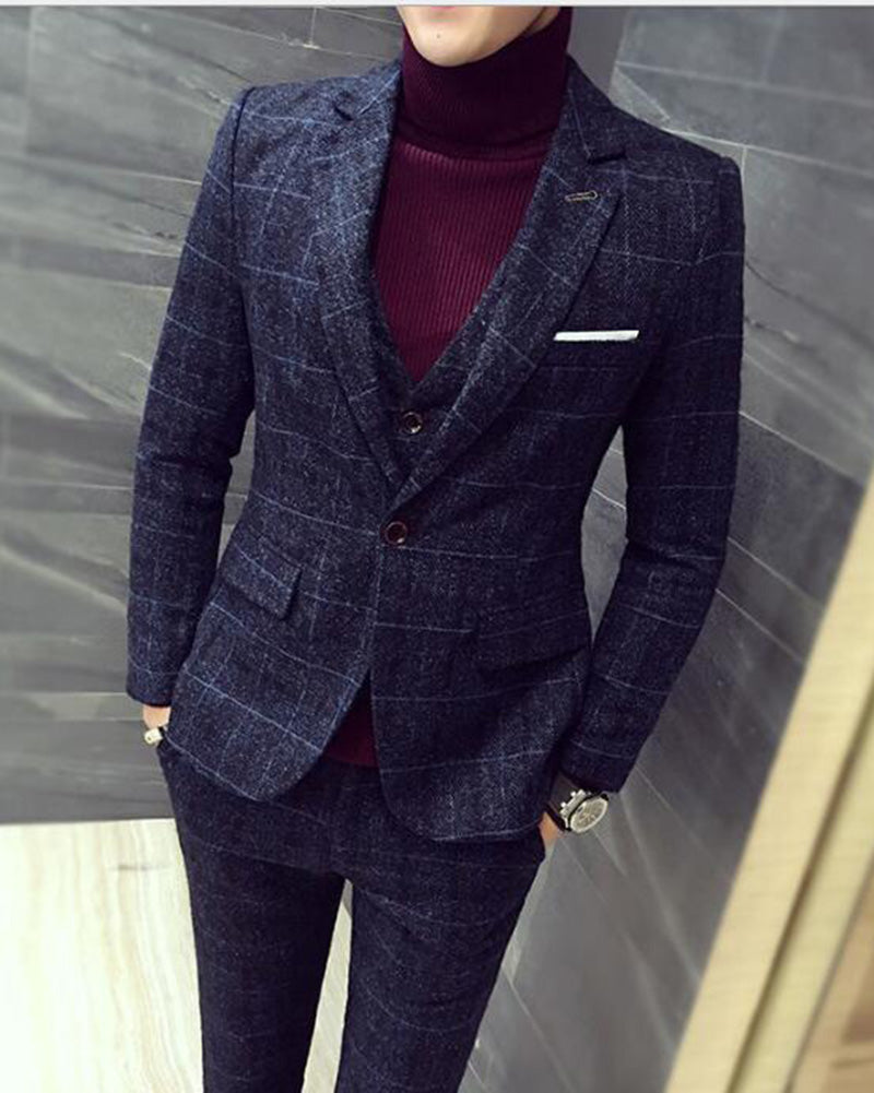Costume britannique pour homme, bleu marine, 3 pièces, nouvelle collection 2023, coupe slim, à carreaux, pour mariage, automne et hiver, CB10190