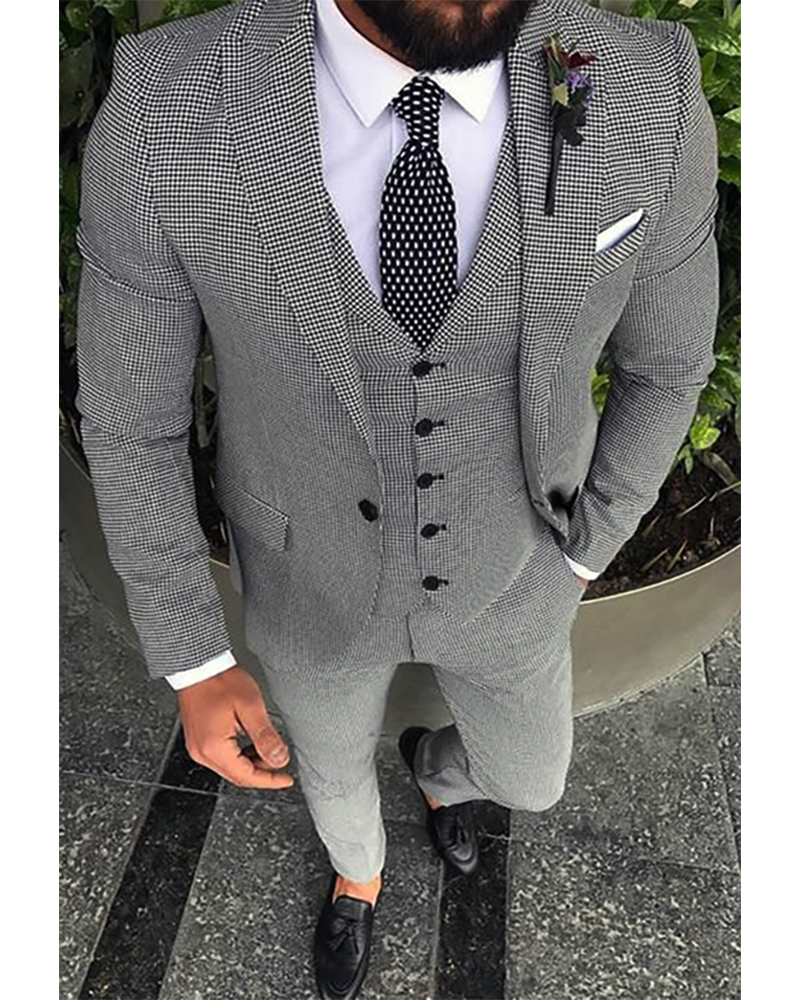 Costume à revers pointu pour homme, veste pied-de-poule, blazer, costume de sport, costume de mariage 3 pièces CB01129