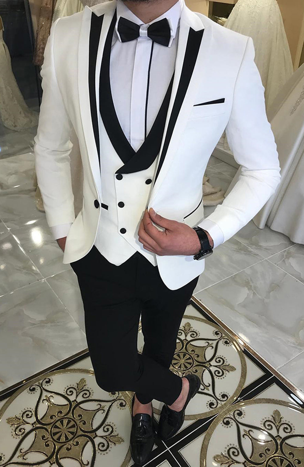 Costume de mariage 3 pièces pour homme, coupe slim, revers en pointe, smoking blanc pour marié CB10105