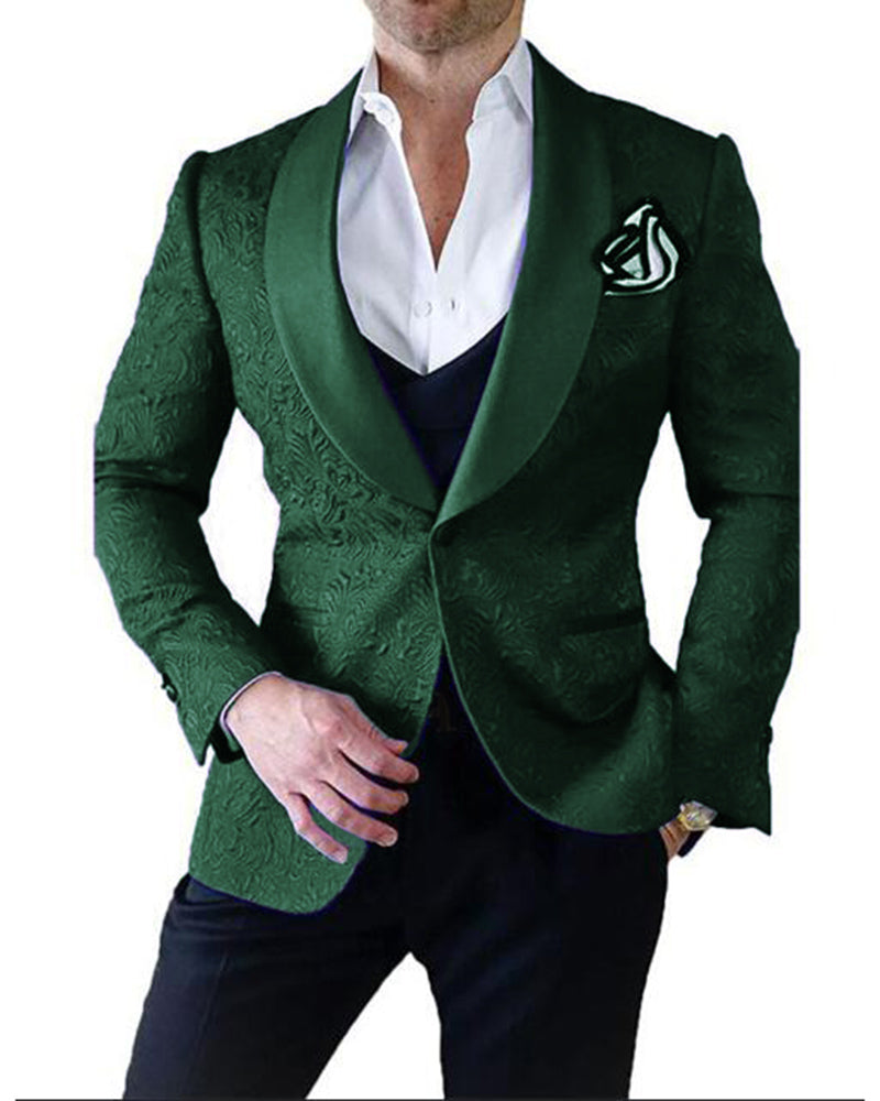 Veste de smoking de mariage à motif floral vert émeraude foncé pour hommes 3 pièces CB3320