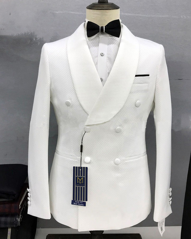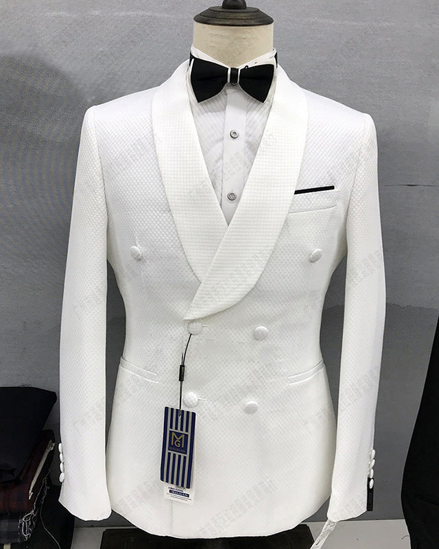 Smoking blanc deux pièces pour homme, costume croisé pour marié CB23652