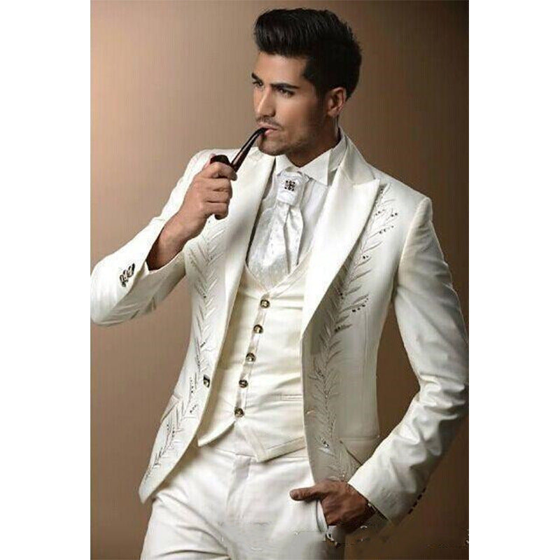 Costume de mariage ivoire 3 pièces avec broderie CB2368