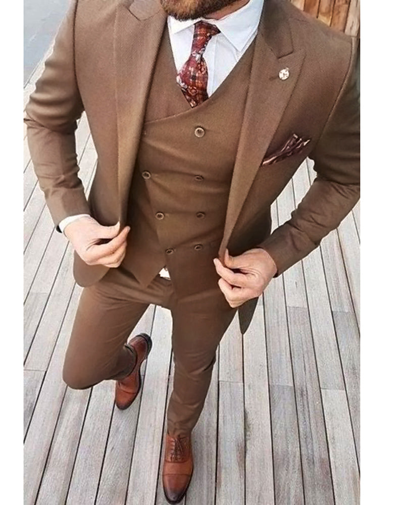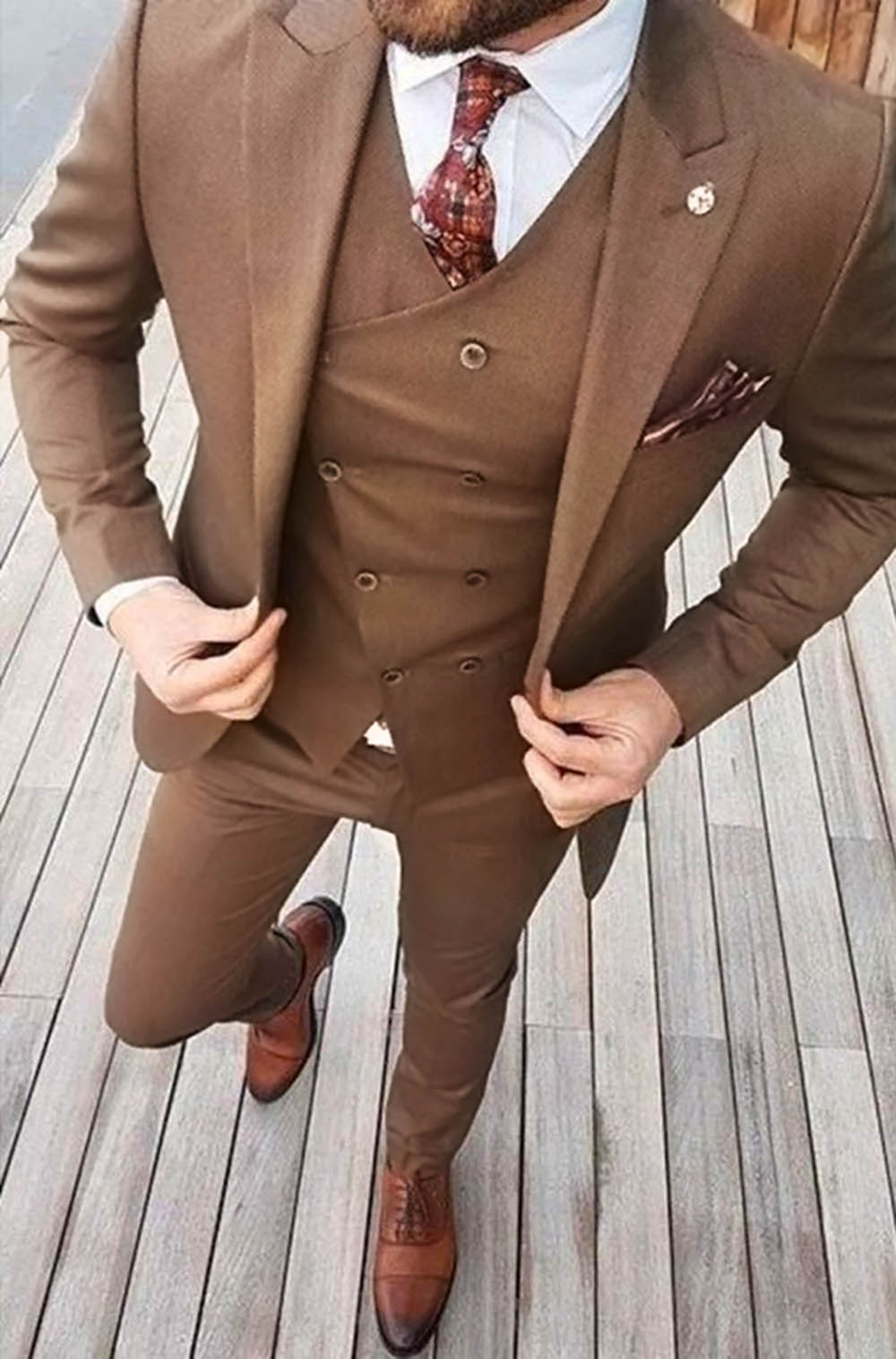 Costume de mariage marron 3 pièces à revers pointus, costume de soirée de bal pour hommes