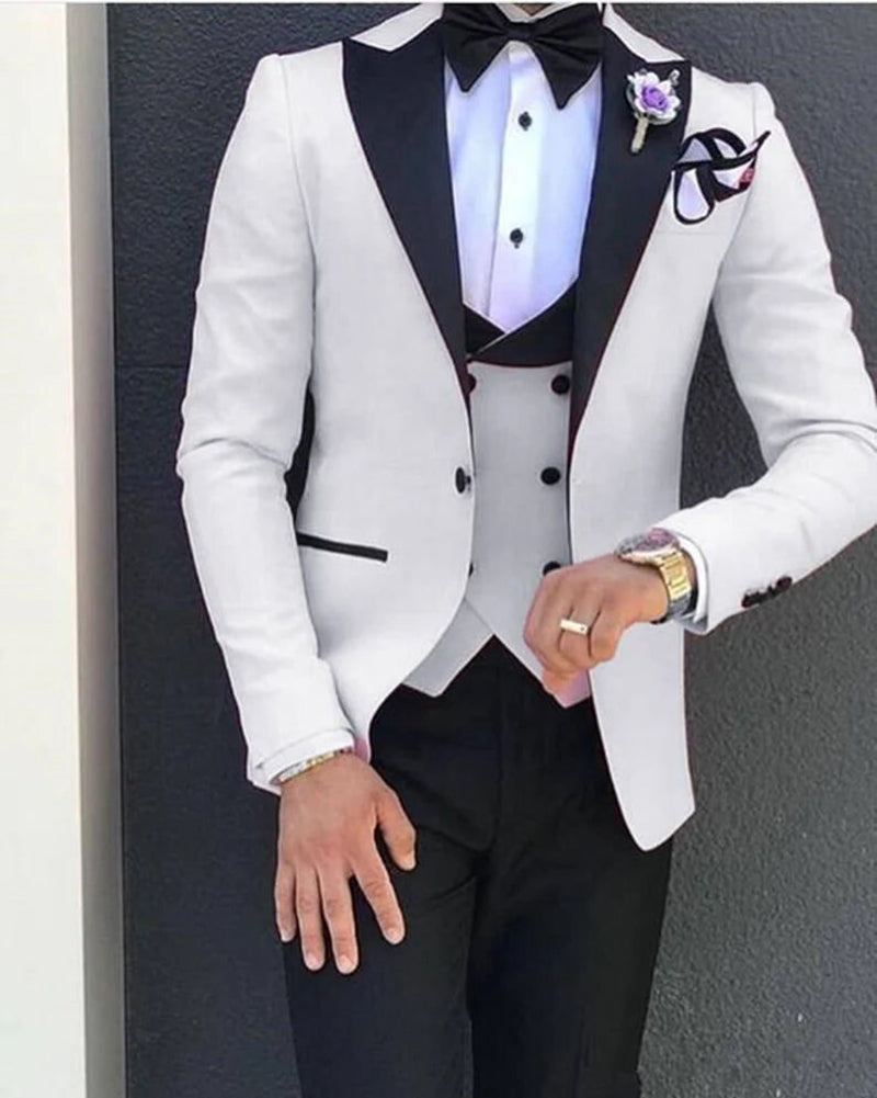 Smoking de mariage noir et blanc à revers pointus, costume de marié 3 pièces CB2109