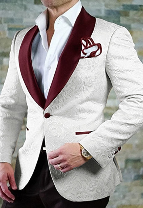 Blazer de smoking de mariage en jacquard à revers châle violet Regency avec pantalon noir 2 pièces CB10101