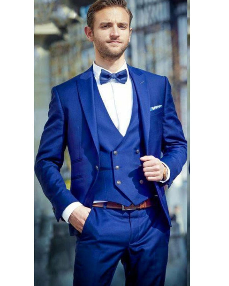 Smoking bleu royal pour hommes, costume de mariage 3 pièces CB3611