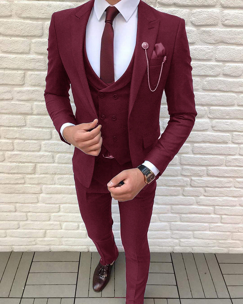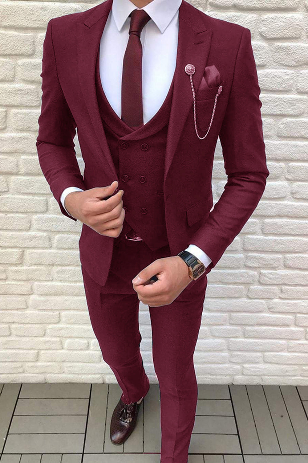 Costumes de mariage trois pièces Slim Fit pour garçons d'honneur Costumes de bal bordeaux pour hommes CB110153